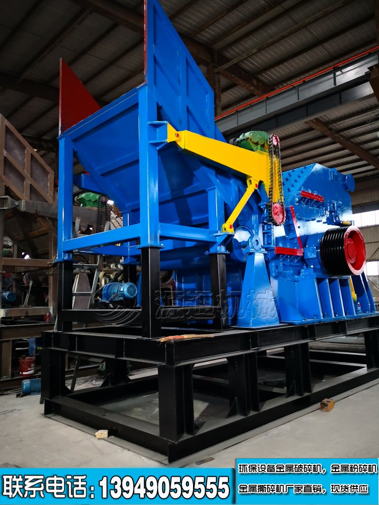 YT1000型彩鋼瓦破碎機破碎彩鋼瓦、大油漆桶、易拉罐、廢鋼的金屬破碎機